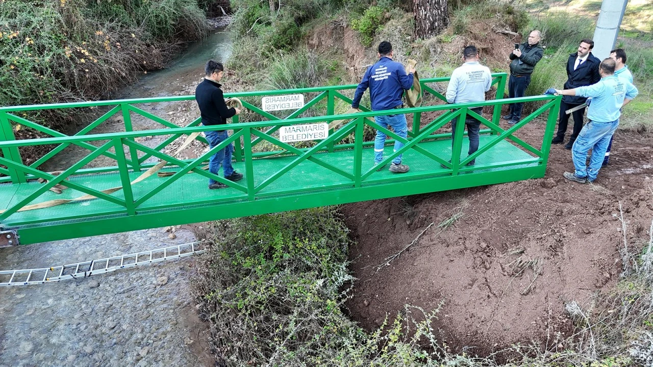 Vatandaşların güvenli ulaşımını sağlamak amacıyla eskiyen köprüleri yenileyen, ihtiyaç duyulan noktalarda da yenisini imal eden Marmaris Belediyesi Destek Hizmetleri Müdürlüğü tarafından Turgut Mahallesi’nde yer alan dere üzerine yeni bir köprü konumlandırdı. Mahalle yaşayanlarının ve muhtar Ümit Kaya’nın talebi üzerine başlatılan çalışmayla Makine Araç Parkı ekipleri tarafından 14 metre uzunluğunda ve 1.5 metre genişliğinde köprü imal edildi. Köprü dün vinç yardımıyla Turgut’ta yer alan dere üzerine yerleştirildi. Çocukların okul yolu üzerinde yer alan köprü hem öğrencilerin yolunu kısaltacak hem de çocukların okula daha güvenli ulaşmalarını sağlayacak.