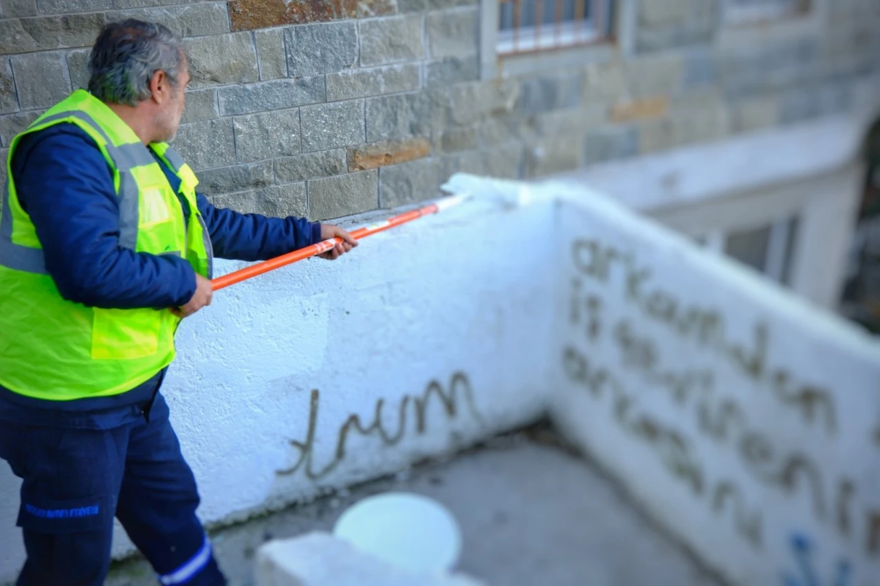 Ekipler parklar, yol kenarları ve ara sokaklarda görüntü kirliliğine sebep olan yazıların temizlenmesi için çalışmalarını sürdürecek.