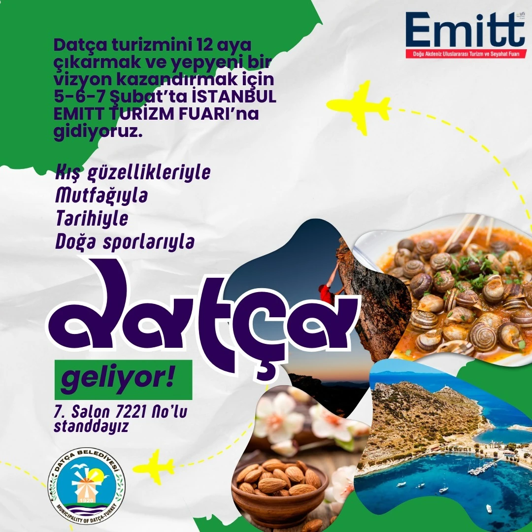 Datça Belediyesi ise yaptığı açıklamada, “Datça turizmini 12 aya çıkarmak ve yepyeni bir vizyon kazandırmak için 5-6-7 Şubat’ta İstanbul EMİTT Fuarı’na gidiyoruz. Kış güzellikleriyle, mutfağıyla, tarihiyle, doğa sporlarıyla Datça geliyor” ifadelerine yer verildi.