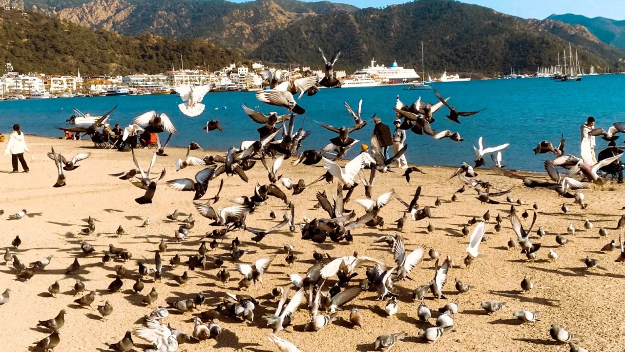 Marmaris’in simgesi haline dönüşen ve bölgeden hiç ayrılmayan sahildeki kuşlar, çocuklarla kaynaşarak, adeta dans gösterisine neden oldular. Bu anlar, sahildeki yazdan kalma günleri andıran huzurlu görüntülerle fotoğraf sanatçılarını da mutlu etti. Kuşların bulunduğu bölgedeki doğal anlar, birbirinden güzel fotoğraflara dönüştü.