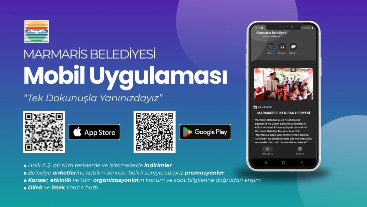 İos telefonlarda App Store ve Android cihanlarda ise Google Play platformlarından cep telefonlarına indirebilen uygulama ile vatandaşlar, belediye haberlerini ve her türlü bilgi ve duyuruyu tek bir noktadan takip edebilecek. Haberler, etkinlikler, projeler, konserler, anketler, belediye tesisleri gibi pek çok sekmenin yer aldığı uygulamada Marmaris’te ikamet eden ve uygulamaya telefonlarına indiren vatandaşlara da Halk A.Ş.’ye ait tüm tesislerde belirli oranlarda indirimler tanımlanacak. Yine uygulamadaki anketlere katılanlara da sürpriz promosyonlar hediye edilecek.