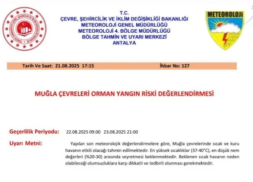 Yetkililer, bu koşulların orman yangını riskini artırabileceğine dikkat çekerek, vatandaşların dikkatli ve tedbirli olmalarını istedi.