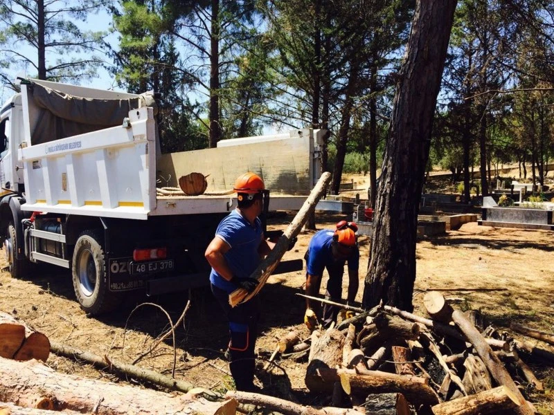 Muğla Büyükşehir Belediyesi, il genelindeki mezarlıklarda bakım, onarım, temizlik ve düzenleme çalışmalarını aralıksız sürdürüyor. Çalışmalar kapsamında budama ve temizlik sırasında çıkan ağaç dalları ile kurumuş odunlar israf edilmeden değerlendirilerek ihtiyaç sahibi ailelere yakacak olarak dağıtılıyor.