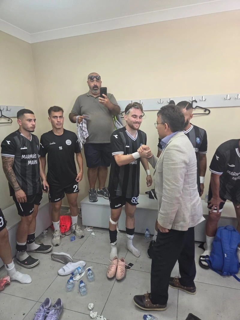 Karşılaşma sonrasında Kaymakam Kaya, Marmaris Belediyespor soyunma odasını ziyaret ederek futbolcuları tebrik etti. Takımın sergilediği centilmenlik ve şehre yaşattıkları heyecan için teşekkür eden Kaymakam Kaya, “Spor; dostluk, kardeşlik ve centilmenliktir. Her iki takımı da mücadelelerinden dolayı tebrik ediyorum.” dedi.