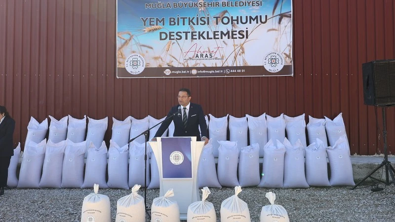 Muğla Büyükşehir Belediyesi Genel Sekreteri Tayfun Yılmaz, “Menteşe ilçemizde ortalama 413 üreticimizin katılımıyla yaklaşık 94 ton yem bitkisi tohumu ücretsiz olarak dağıtıyoruz. Muğla Büyükşehir Belediyesi olarak il genelinde tarıma, hayvancılığa ve kırsal kalkınmaya destek veriyoruz. Bu desteklerin, Muğla’nın geleceğine yönelik bir yatırım olduğunu biliyoruz. Muğla sadece turizmiyle, deniziyle, güneşiyle değil; aynı zamanda üretimiyle de önemli bir şehir. Yerel yönetim olarak üreticinin, çiftçinin her zaman yanında yer alıyor; ülke çapında yaşanan bu açığı bir nebze olsun kapatmak için çalışıyoruz. Büyükşehir Belediye Başkanımız Sayın Ahmet Aras’a bu noktada gösterdiği hassasiyet ve bize tanıdığı alan dolayısıyla teşekkür ediyor, sizlerle bir araya gelmekten büyük memnuniyet duyuyorum.” dedi.