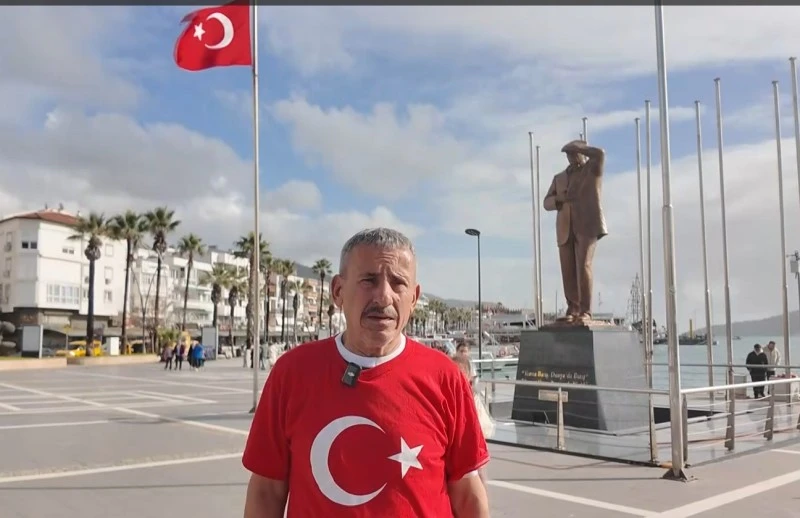 Kendisine eşlik eden onlarca çocuk, genç, yaşlı ve Marmaris’te yaşayan vatandaşlarla birlikte yürüyen Yazgan, “Bayrağımıza dokunan eller kırılsın” mesajını verdi.