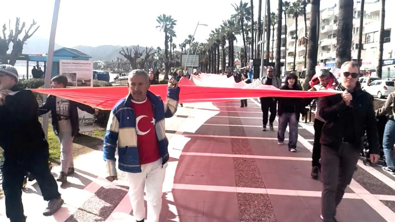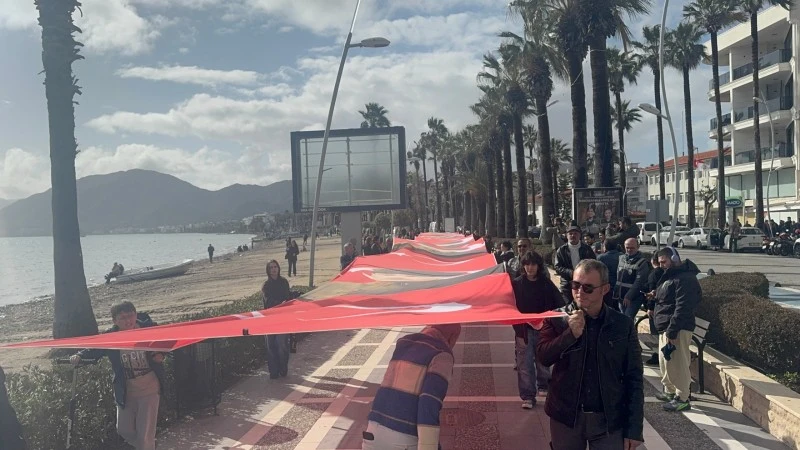 Bayrak yürüyüşüne katılan Marmaris sakinlerinden Ayşe Şişmek ise duygularını “Bayrağımıza sahip çıkmak zorundayız, en azından bu görevi yapmalıyız. Bayrak bizim kırmızı çizgimizdir. Kötü niyetli hiç kimse bayrağımızı indiremez, kaldıramaz, hiçbir yere konduramaz. Biz bugüne kadar bayrak için yaşadık, bayrak için kan döktük. O kadar şehidi bayrağımız için verdik. Marmaris halkı olarak bayrağımızı taşımaktan büyük gurur duydum” sözleri ile dile getirdi.