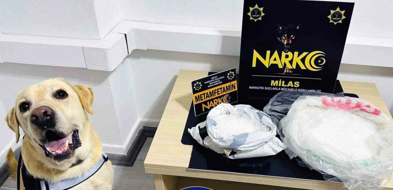 Muğla İl Emniyet Müdürlüğü Narkotik Suçlarla Mücadele Şube Müdürlüğü ve KOM Şube Müdürlüğü ekiplerince Milas ilçesinde bir ikamette narkotik köpeği ‘Çiko’ ile yapılan aramada, 5 kilo 938 gram metamfetamin ele geçirildi. Uyuşturucu ticareti suçu kapsamında 4 şüpheli şahıs gözaltına alındı.