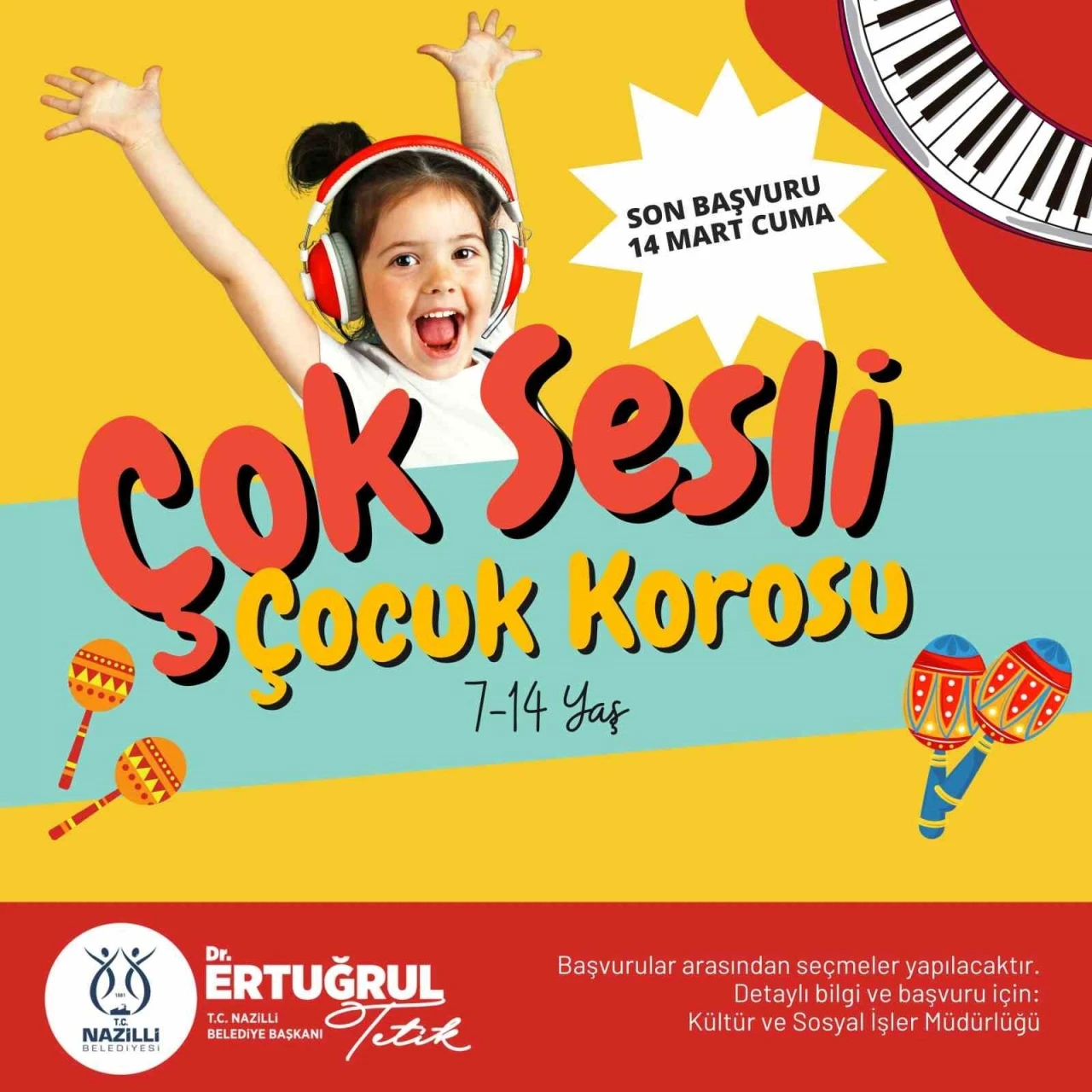 Nazilli Belediyesi, müziğe ilgi duyan çocukları bir araya getirmek ve yeteneklerini geliştirmek için Çok Sesli Çocuk Korosu kuruyor. 7-14 yaş arası çocukların başvurabileceği koroda, yetenekli genç sesler keşfedilerek müziğe olan ilgilerini artırmak için çalışmalar yapılacak. Koroya katılmak isteyen çocuklar, 14 Mart Cuma gününe kadar Nazilli Belediyesi Kültür ve Sosyal İşler Müdürlüğü’nden kayıt yaptırabilecek. Koro çalışmalarında çocuklar, çok sesli müzik eğitimi alarak hem bireysel hem de toplu performans becerilerini geliştirme fırsatı bulacak. Nazilli Belediyesi olarak bu tür sosyal çalışmaları çok önemsediklerini ifade eden Belediye Başkanı Dr. Ertuğrul Tetik; "Özellikle küçük yaşlardan itibaren çocuklarımızın yeteneklerinin geliştirilmesi, daha fazla sosyalleşmelerinin sağlanması ve kendi yaş grupları ile iletişimlerinin artırılması için çok sesli çocuk koromuzu kuruyoruz. Müziğe ilgi duyan çocuklarımızı belediyemiz Kültür ve Sosyal İşler Müdürlüğü’ne kayıt için davet ediyorum" dedi.