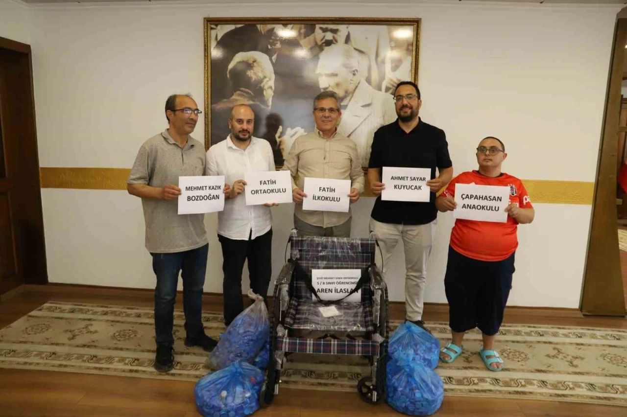 Nazilli Belediyesi, sosyal sorumluluk projelerine verdiği destekle dikkat çekmeye devam ederken, Belediye Başkanı Op. Dr. Ertuğrul Tetik, "1 Adım 1 Kapak" projesine sunduğu katkıyla ihtiyaç sahiplerine 4 tekerlekli sandalye ulaştırdı. Nazilli Belediye Başkanı Op. Dr. Ertuğrul Tetik, Nazilli Engelsiz Engelliler Derneği’nin katkısıyla toplanan 2 ton mavi kapak sayesinde ihtiyaç sahiplerine 4 adet tekerlekli sandalye ulaştırdı. Başkan Tetik, projeye katkılarından dolayı başta Engelsiz Engelliler Derneği Başkanı Ahmet Ünlü’ye, Fatih İlk ve Ortaokulu’na, Çapahasan İlkokulu’na, Şehit Mehmet Dinek Ortaokulu 5/B sınıfı öğrencilerine ve Kuyucak’tan Ahmet Sayar ile Bozdoğan’dan Mehmet Kazık’a teşekkür etti. Sosyal sorumluluk projelerinin önemine vurgu yapan Belediye Başkanı Ertuğrul Tetik, "Sosyal sorumluluk projeleri, toplumun ihtiyaçlarına duyarlılık göstermek ve bireylerin hayatına olumlu katkılarda bulunmak amacıyla hayata geçirilen önemli girişimlerdir. Hepimizin farklı şekillerde katkı sağlayabileceği bu projeler, hem yardıma ihtiyacı olan insanlara destek olmamıza hem de toplumsal dayanışma ruhunu güçlendirmemize yardımcı olur. Her birimizin, çevremizdeki ihtiyaç sahiplerine el uzatarak, daha duyarlı bir toplum oluşturma sürdürülebilirliğine katkı sağlaması büyük önem taşır. Sonuç olarak, sosyal sorumluluk projelerine destek olmalı ve bu tür girişimlerde aktif rol alarak, daha yaşanabilir ve adil bir dünya için katkıda bulunmalıyız. Unutmayalım ki, küçük adımlar büyük değişimlere yol açabilir" dedi.