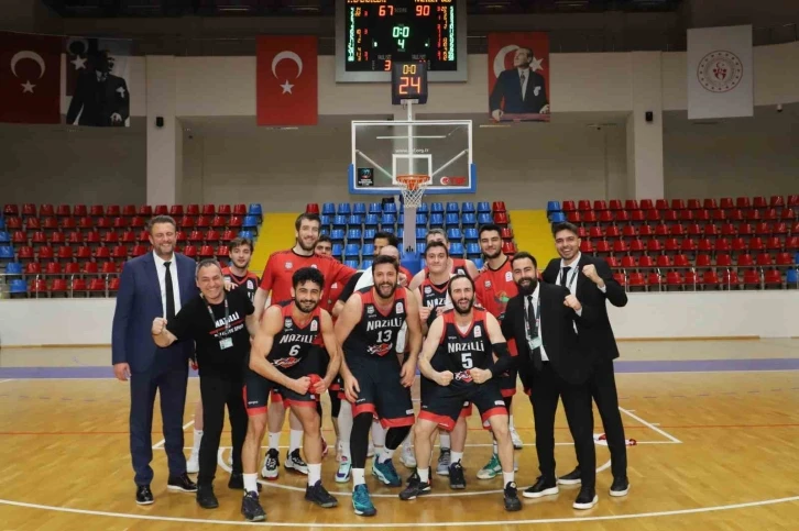Türkiye Basketbol Erkekler 2. Ligi’nde 1. Lige yükselme son 16 turu ikinci maçında bugün Beylikdüzü Spor Kompleksi Salonu’nda İstanbul Efendileri Basketbol Takımı ile karşılaşan Nazilli Belediyespor Erkek Basketbol Takımı sahadan galip ayrılarak genel durumu 2-0’a getirdi ve adını son 8 takım içine yazdırdı. Karşılaşmaya hızlı başlayan Nazilli Belediyespor Erkek Basketbol Takımı ilk çeyreği 17-18 ile önde tamamladı. İkinci çeyrekte üstün oyununu koruyan naz naz 31-43’lük skorla karşılaşmanın ikinci yarısına başladı. 52-70’lik skorla 3. çeyreği önde tamamlayan takımı son çeyrekte de rakibine şans tanımadı ve parkeden 67-90’lık skorla galip ayrıldı. Siyah beyazlı takımda Mert İlhan 22 sayı 2 asist ile en skorer oyuncu olarak kayıtlara geçerken, yakımda ismi öne çıkan oyuncular; Çağatay Çevik 15 sayı 7 ribaund, Aykut Ulutuğay 13 sayı 5 ribaund, Oğulcan Sevim 12 sayı 14 asist ile double double ve Alparslan Uruk 10 sayı 4 ribaund ile skora en çok katkı yapan oyuncular olarak oldu. Nazilli Belediyespor Erkek Basketbol Takımı’nın son 8 turundaki rakibi Sakarya Belediyespor-İstanbul Teşvikiye SK galibi olacak.