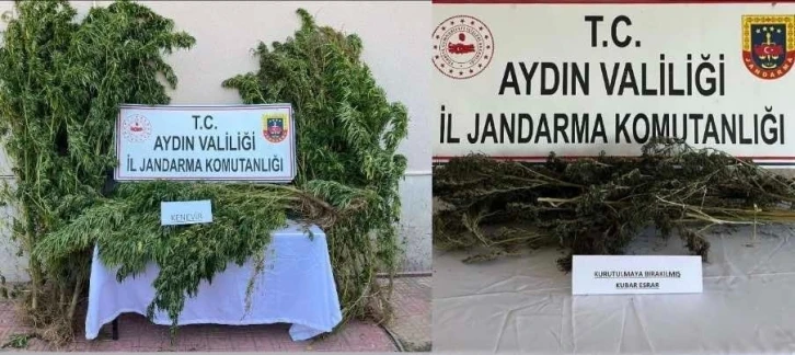 Aydın’ın Nazilli ilçesinde jandarma ekipleri tarafından yapılan çalışmada, 153 kök hint keneviri ve 250 gram uyuşturucu madde ele geçirildi.