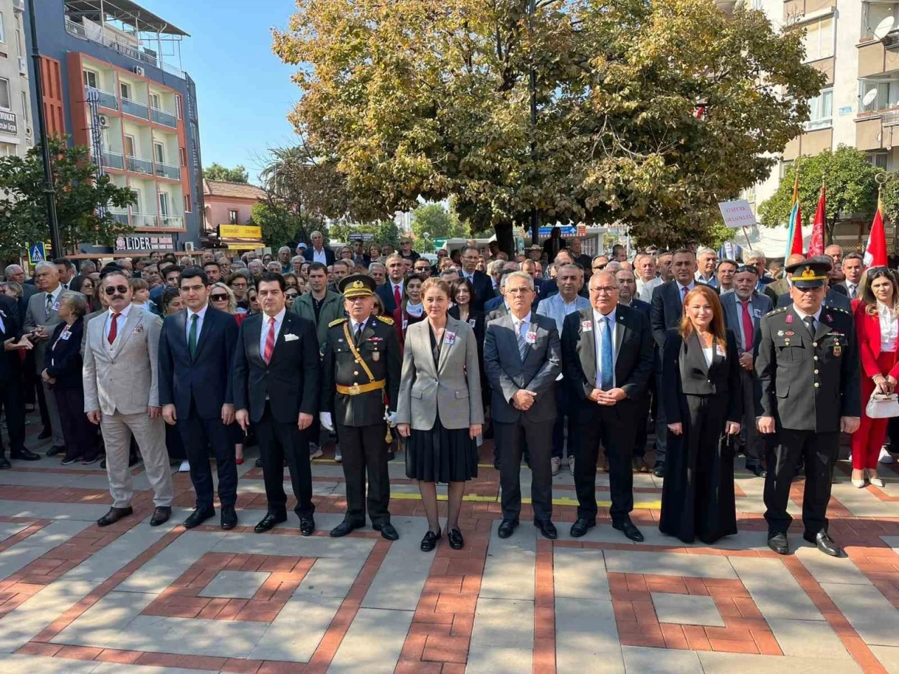 Nazilli Kaymakamlığı’nın organize ettiği 29 Ekim Cumhuriyet Bayramı kutlamaları Atatürk Anıtı önünde düzenlenen çelenk sunma töreniyle başladı. Nazilli Kaymakamlığı tarafından 20 Ekim Cumhuriyet’in kuruluşunun 101. Yıldönümü dolayısıyla Atatürk Anıtı’na çelenk sunma töreni gerçekleştirildi. Törene Nazilli Kaymakamı Huriye Küpeli Kan, Nazilli Belediye Başkanı Ertuğrul Tetik, Nazilli Cumhuriyet Başsavcısı Murat Dilsiz, Adalet Komisyonu Başkanı Nusret Emirosmanoğlu, Nazilli Garnizon Komutanı Ulaştırma Albay Nisan Köprülü, Nazilli İlçe Emniyet Müdürü Şafak Yıldırım, Nazilli ilçe Jandarma Komutanı Yüzbaşı Ahmet Refik Özsoy, kurum amirleri, daire müdürleri, siyasi partilerin, meslek odalarının ve STK’ların temsilcileri ile öğretmen ve öğrenciler katıldı. Atatürk Anıtı’na kaymakamlık, belediye başkanlığı ve garnizon komutanlığı çelenklerinin sunulmasının ardından saygı duruşu yapıldı ve İstiklal Marşı okundu.