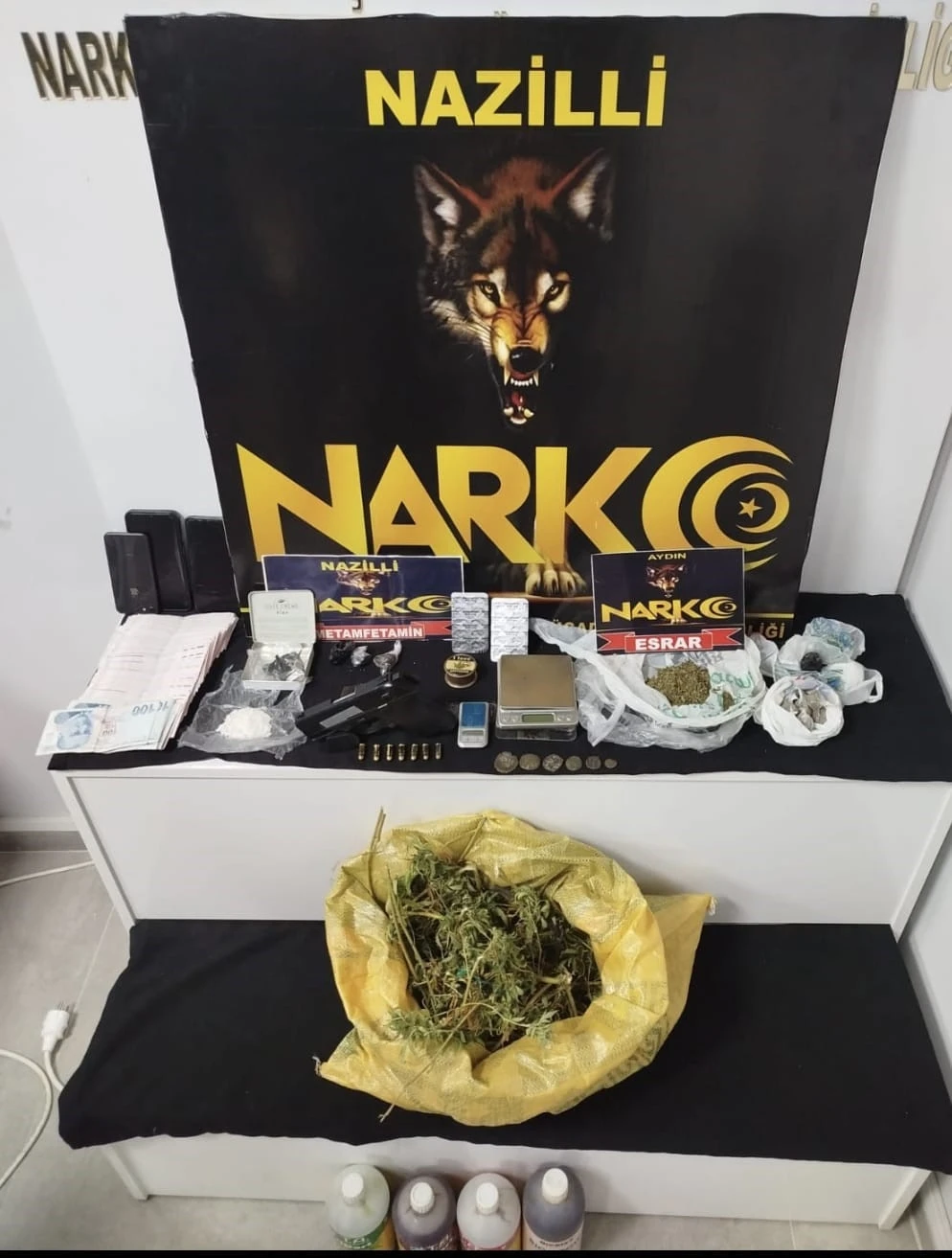 Aydın’ın Nazilli ilçesinde polis ekiplerince uyuşturucu madde ticareti yaptığı tespit edilen 3 şüpheliye yönelik düzenlenen operasyonda 2 kişi tutuklandı, 1 kişi adli kontrol şartıyla serbest bırakıldı. Edinilen bilgiye göre, Nazilli Narkotik Suçlarla Mücadele Büro Amirliği ekipleri Şirinevler ve Altıntaş mahallelerinde uyuşturucu madde ticareti yaptığı belirlenen 3 şahsı tespit etti. Ekipler, uzun süren teknik ve fiziki takibin ardından operasyon için düğmeye bastı. Zehir tacirlerine yönelik eş zamanlı gerçekleştirilen baskında L.Ç, M.Z. ve B.A. isimli 3 şüpheli ikametlerinde kıskıvrak yakalandı. Şüphelilerin evlerinde, üzerlerinde ve araçlarında yapılan aramada; 60 gram metamfetamin, 41 gram esrar, 20 adet sentetik ecza, 1 kök kenevir bitkisi, 2 hassas terazi, 1 ruhsatsız tabanca ve çok sayıda mermi, 25 bin lira nakit para ile yasaklı hint keneviri yetiştirmeye yönelik çeşitli cihaz ve sıvılar ele geçirildi. Emniyetteki işlemlerinin ardından adliyeye sevk edilen şüphelilerden L.Ç. ve B.A. uyuşturucu madde ticareti suçundan tutuklanarak cezaevine gönderilirken, M.Z. adli kontrol şartıyla serbest bırakıldı. Operasyon kapsamında ayrıca 10 kişi hakkında ’uyuşturucu madde kullanmak ve bulundurmak’ suçundan adli işlem başlatıldığı öğrenildi.