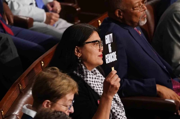 ABD Kongresi’nde onlarca Demokrat Partili Kongre üyesi, Tel Aviv yönetiminin Gazze’de binlerce sivilin ölümü ve ortaya çıkarılan insani kriz nedeniyle Netanyahu’nun konuşmasını boykot etti. Temsilciler Meclisinin Müslüman kadın üyesi Rashida Tlaib’in ise kefiye taktığı ve İsrail başbakanının konuşması sırasında “Soykırım Suçlusu” yazılı döviz taşıdığı görüldü. Bir katılımcının ise İsrailli esirlerin serbest bırakılması için Hamas ile anlaşma yapılması çağrısında bulunan "Anlaşmayı şimdi yapın" yazılı sarı bir tişört giydiği görüldü. Konuşma sırasında Demokrat Parti’nin başkan adayı Başkan Yardımcısı Kamala Harris’in salonda bulunmaması dikkat çekti. 100’den fazla ABD Kongresi stajyeri Netanyahu’nun konuşmasını boykot etti