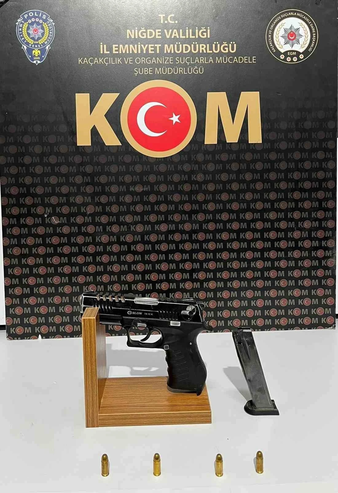 Niğde Cumhuriyet Başsavcılığı koordinesinde, İl Emniyet Müdürlüğü Kaçakçılık ve Organize Suçlarla Mücadele (KOM) Şube Müdürlüğü ekipleri 18-21 Eylül 2025 tarihleri arasında çalışma gerçekleştirdi. Operasyonda 4 şüpheli gözaltına alınırken, şüphelilerin işyeri ve araçlarında yapılan aramalarda 21 bin 780 adet dolu makaron, 1 tabanca, 1 şarjör, 4 fişek ve 1 sahte çek ele geçirildi.