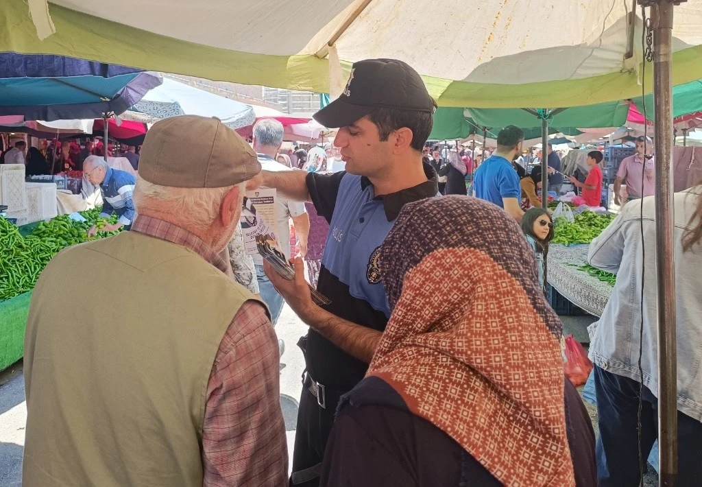 Polis ekipleri, karşılaşılabilecek muhtemel suçlara karşı alınabilecek önlemler hakkında vatandaşlara bilgi verirken, hazırlanan bilgilendirici broşürleri de dağıttı.