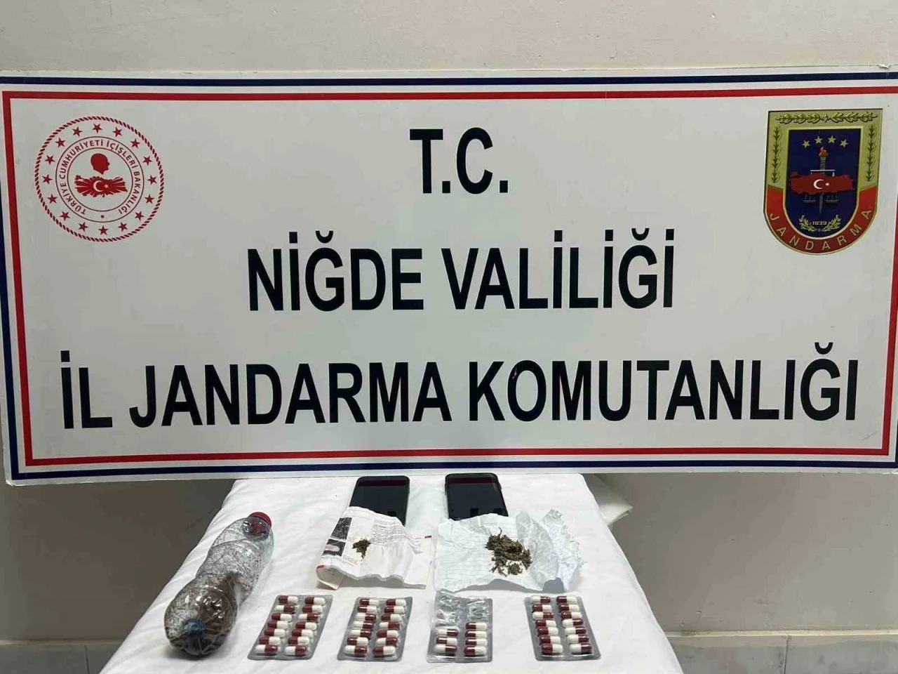 Bor ve Ulukışla ilçelerinde belirlenen adreslerde yapılan aramalarda 3 şüpheli şahıs gözaltına alındı. Şüphelilerin üzerlerinde, araçlarında ve ikametlerinde yapılan aramalarda; 50 adet sentetik ecza hap, 138 gram uyuşturucu madde ile 1 kök kenevir bitkisi ele geçirildi.