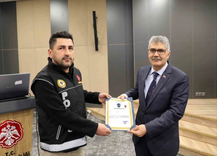 Niğde Valisi Cahit Çelik, uyuşturucu operasyonunda yaralanmalarına rağmen suçluları yakalayan 2 polis memurunu başarı belgesi ile ödüllendirdi.