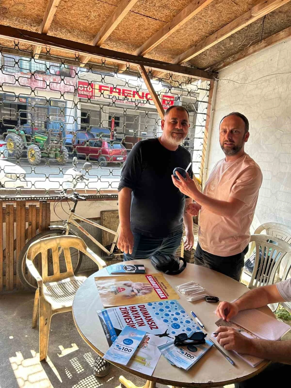 DÜZCE(İHA) – Düzce Sağlık Müdürlüğüne bağlı ekipler sanayi bölgesinde esnafı ziyaret ederek karbonmonoksit ölçümü ile nikotin bağımlılık testi ile bireylerin bağımlılık düzeyleri belirlendi.