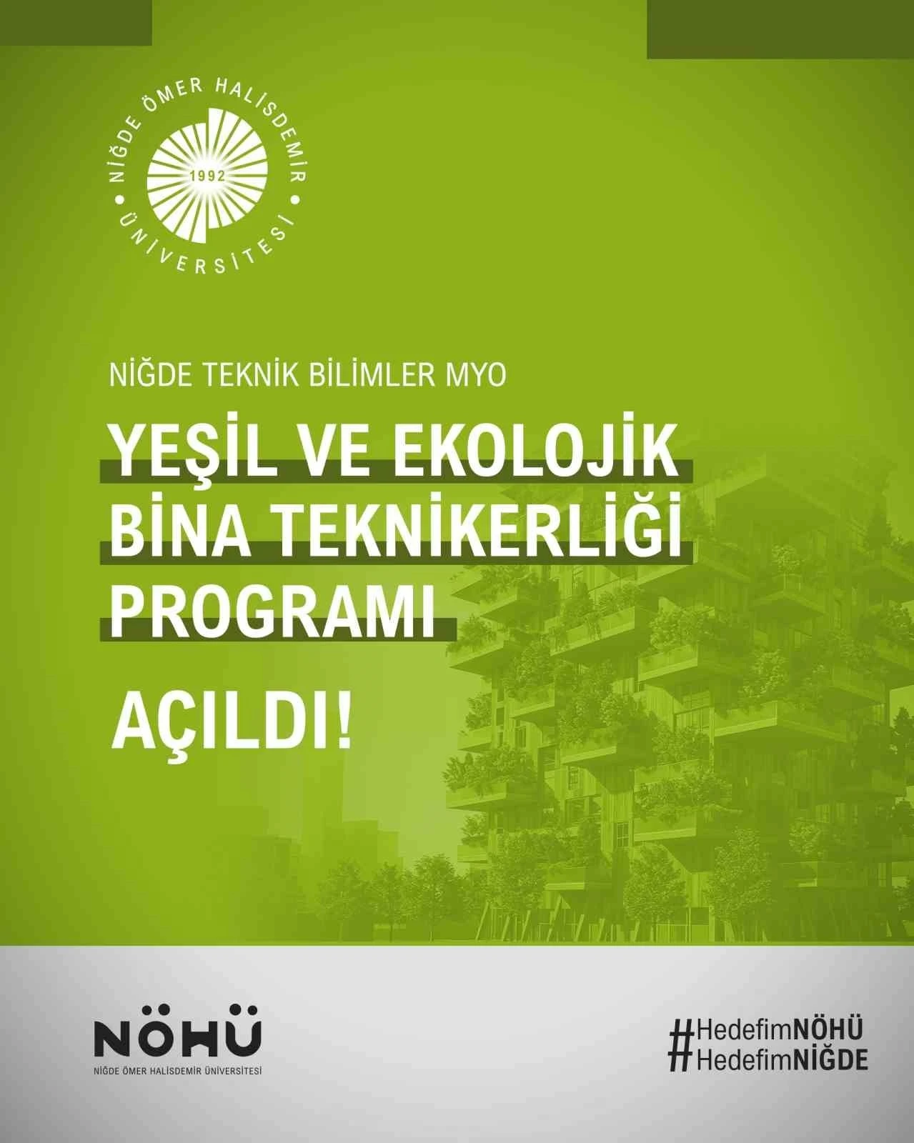 Dünya Yeşil Kampüs sıralamasında ilk 300’e giren ve Türkiye genelinde sürdürülebilir ve iklim dostu çalışmalar yürüten 11 pilot yükseköğretim kurumundan biri olan Niğde Ömer Halisdemir Üniversitesi (NÖHÜ), çevre odaklı eğitimlerine bir yenisini daha ekledi. Niğde Teknik Bilimler Meslek Yüksekokulu bünyesinde ’Yeşil ve Ekolojik Bina Teknikerliği Programı’ açıldı.