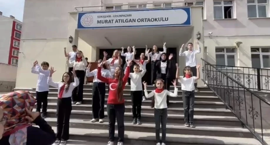 Eskişehir’de ortaokul öğrencileri İstiklal Marşı’nı işaret diliyle okuyarak farkındalık oluşturdu.