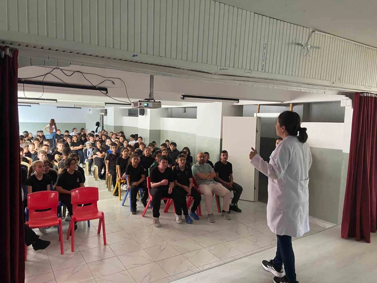 Eğitim kapsamında öğrencilere, özellikle ilkbahar ve yaz aylarında daha sık görülen kırım kongo kanamalı ateşi hastalığı hakkında bilgi verilerek, kenelerden korunma yöntemleri, hastalıkların bulaşma yolları, belirtileri ve alınması gereken önlemler detaylı bir şekilde anlatıldı. Ayrıca bulaşıcı hastalıklar konusunda da genel bilgilendirmeler yapılarak, hijyenin önemi vurgulandı.