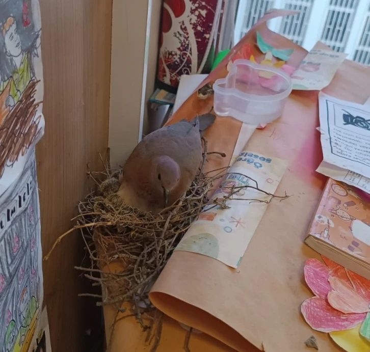 Adıyaman’da sınıfa yuva yaparak 2 yumurta bırakan yusufçuk kuşunun yavruları dünyaya gözünü açtı.