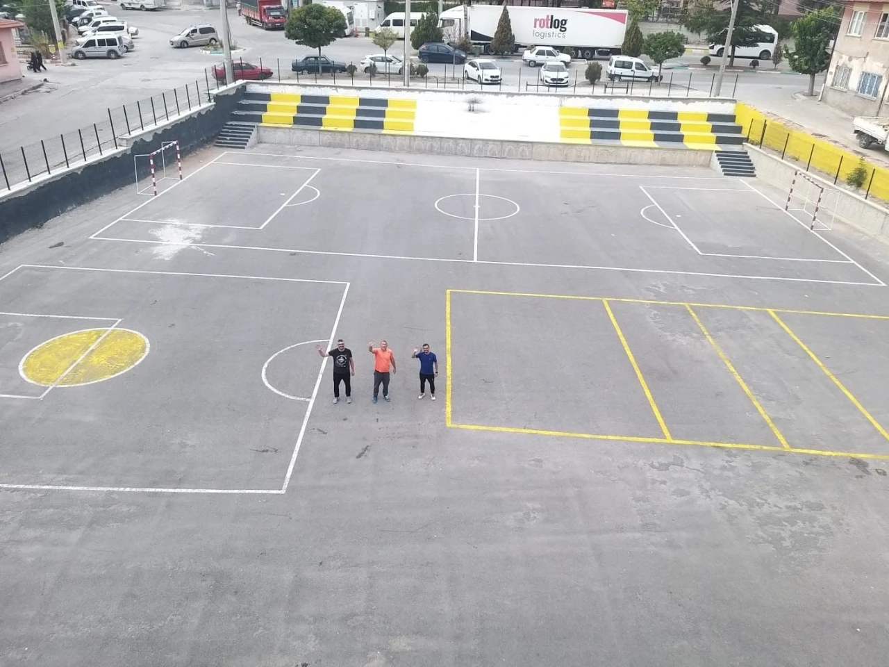 Afyonkarahisar Emirdağ Mithatpaşa Ortaokulu öğretmenleri okul içerisinde spor etkinliklerinin gerçekleştirdiği sahaların çizgilerini yenileyerek örnek bir davranışa imza attılar.