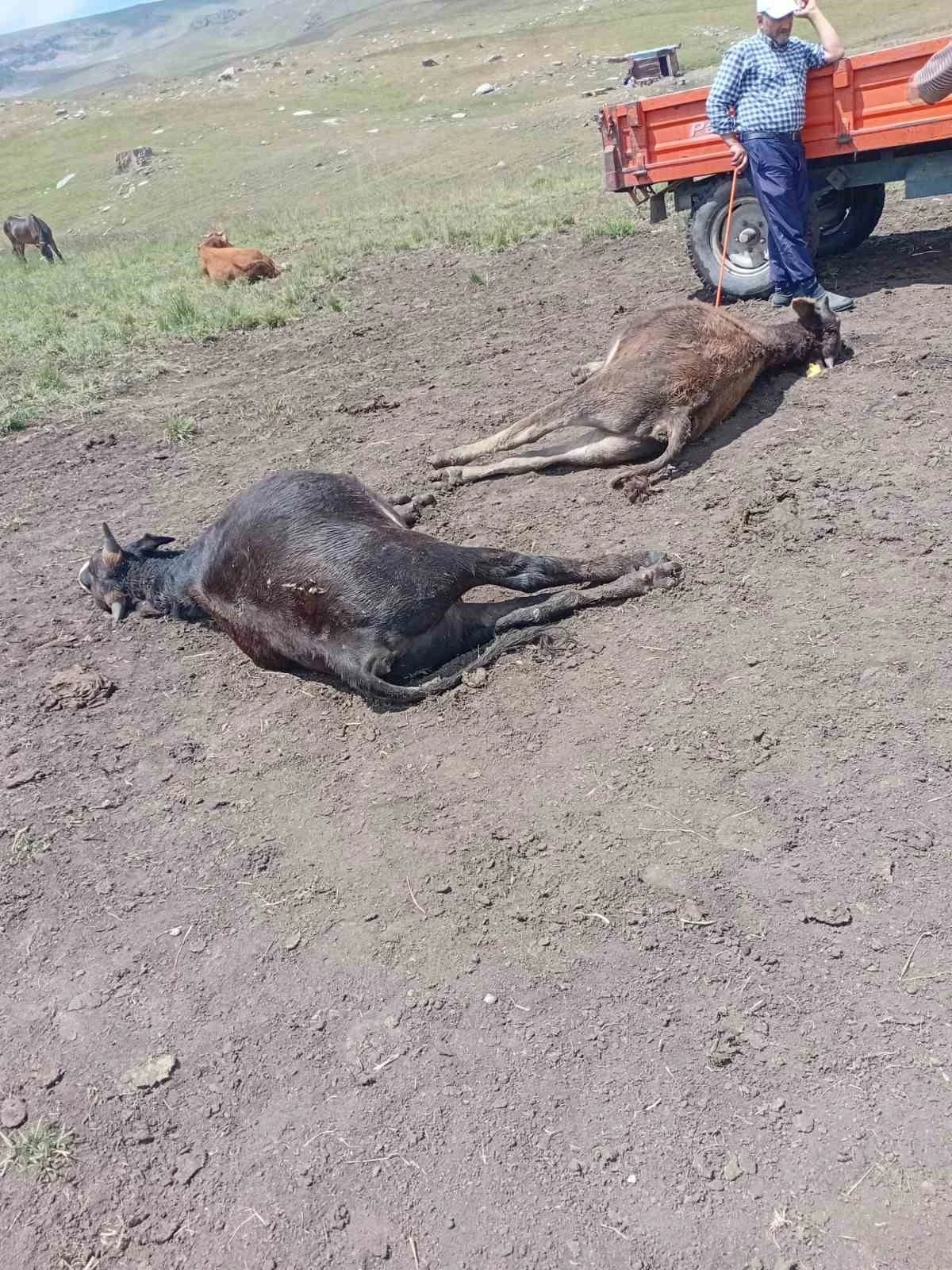 Erzurum’un Oltu ilçesine bağlı Süleymanlı ve Nügürcük mahallelerinin ortak kullandığı Akçayırlar Yaylası’nda yıldırım düşmesi sonucu 4 büyükbaş hayvan telef oldu.