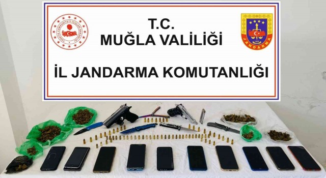 Yapılan aramada 10 şüpheli şahıs, 4 adet tabanca, 66 adet fişek, 4 adet sustalı bıçak, bir miktar esrar, bir miktar kenevir tohumu ve 14 adet elektronik sigara ele geçirildi.