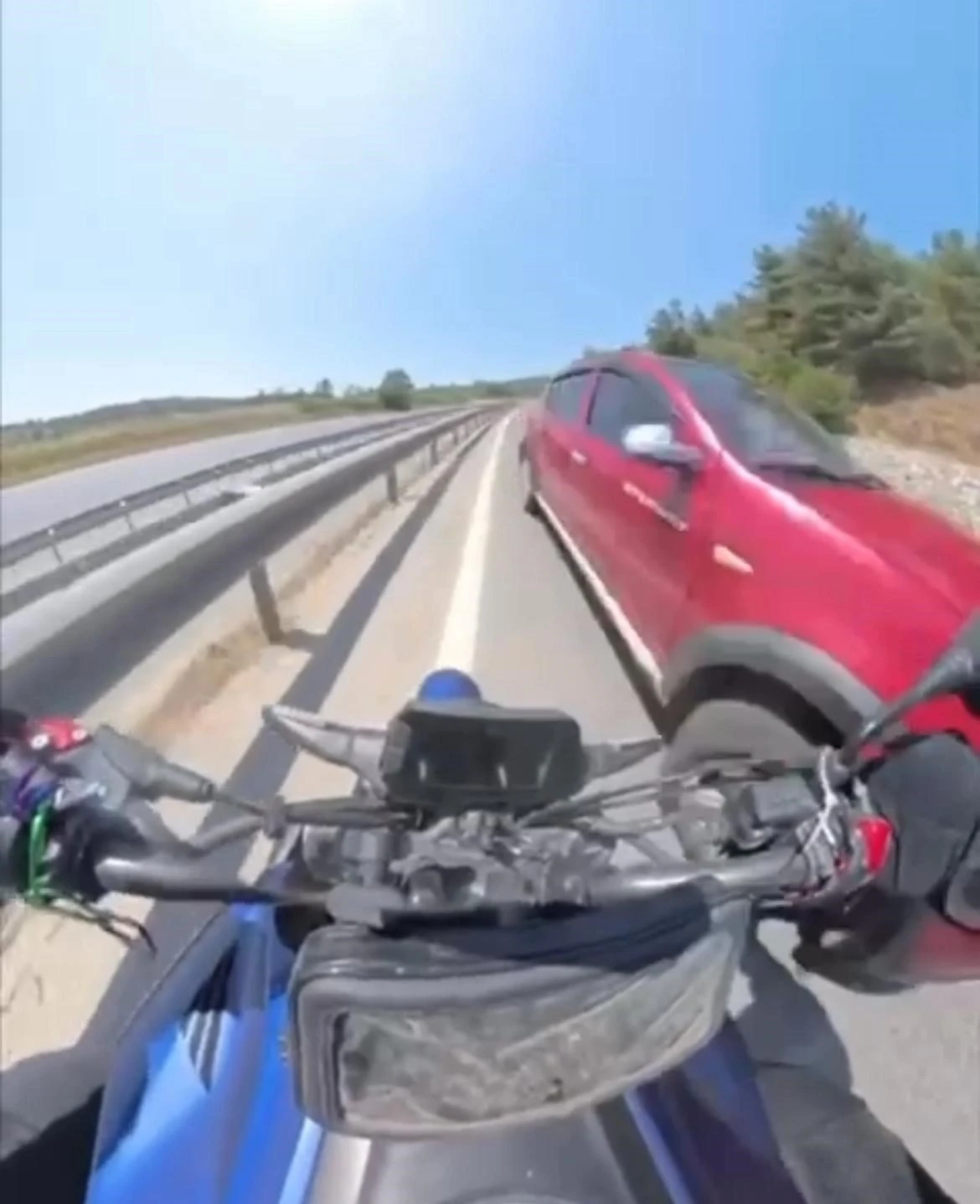 Bursa İstanbul karayolunda sol şeritte hızla ilerleyen motosikletli, ters yönden gelen otomobili son anda fark etti. Facianın teğet geçtiği o anlar kask kamerasına anbean yansıdı.