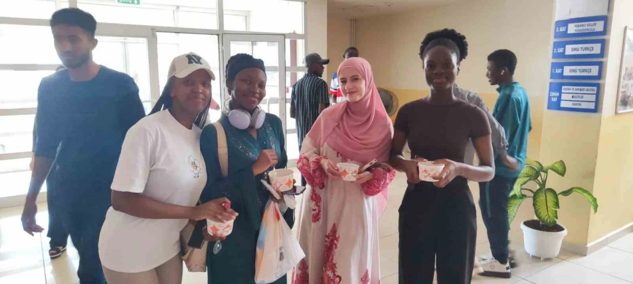 Muharrem ayının paylaşma ve dayanışma ruhunu yansıtan etkinlikte, üniversitenin gelenekselleşen aşure ikramı büyük ilgi gördü. OMÜ Rektör Yardımcıları Prof. Dr. Alper Kesten, Prof. Dr. Ayşe Pınar Sumer ve Prof. Dr. Çetin Kurnaz, öğrenciler, akademik ve idari personel de katıldı. Etkinlikte yalnızca aşure ikramı yapılmakla kalınmadı; aynı zamanda OMÜ’de öğrenim gören uluslararası öğrencilere aşure kültürü tanıtıldı. Farklı coğrafyalardan gelen öğrenciler, bu geleneksel tatlıyı ilk kez tatmanın ve anlamını öğrenmenin mutluluğunu yaşadı. Muharrem ayının bereketini ve bütünleştirici ruhunu simgeleyen aşureler, OMÜ protokol üyeleri ve SKSDB personeli tarafından elden dağıtıldı. Samimi ve sıcak bir atmosferde geçen etkinlikte, birlik ve beraberlik duygusu ön plana çıktı. Türk bayraklı aşure tepsisi