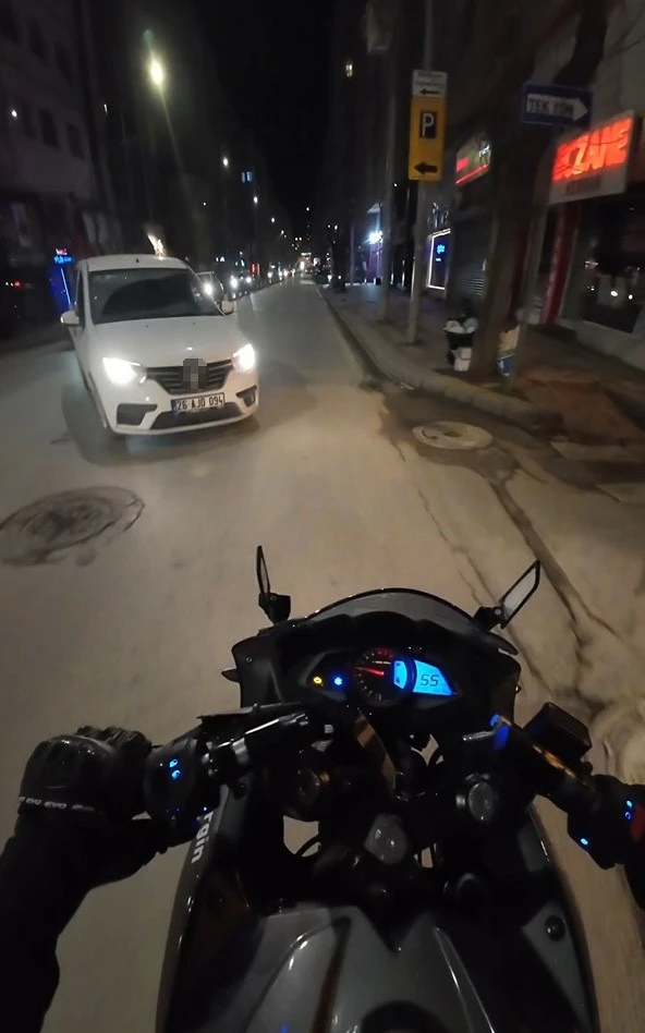 Olay, Odunpazarı ilçesi Akarbaşı Mahallesi Mustafa Kemal Atatürk Caddesi’nde meydana geldi. Cadde üzerinde ilerleyen ve yeşil şıkta geçen Yavuz Ergin idaresindeki 26 AHP 963 plakalı motosikletin önüne bir anda karşı yönden gelen ve Ulusal Sokak’a dönmek isteyen 26 AJD 094 plakalı sedan otomobil kırdı. Önünde aracı gören genç motosiklet kullanıcısı anlık refleks ile yolun sağına doğru yönelerek araca çapraktan kıl payı ile kurtuldu. Yaşanan panik anı kask kamerasına yansıdı. Araç sürücüsü ise özür dahi dilemeden yoluna devam etti.