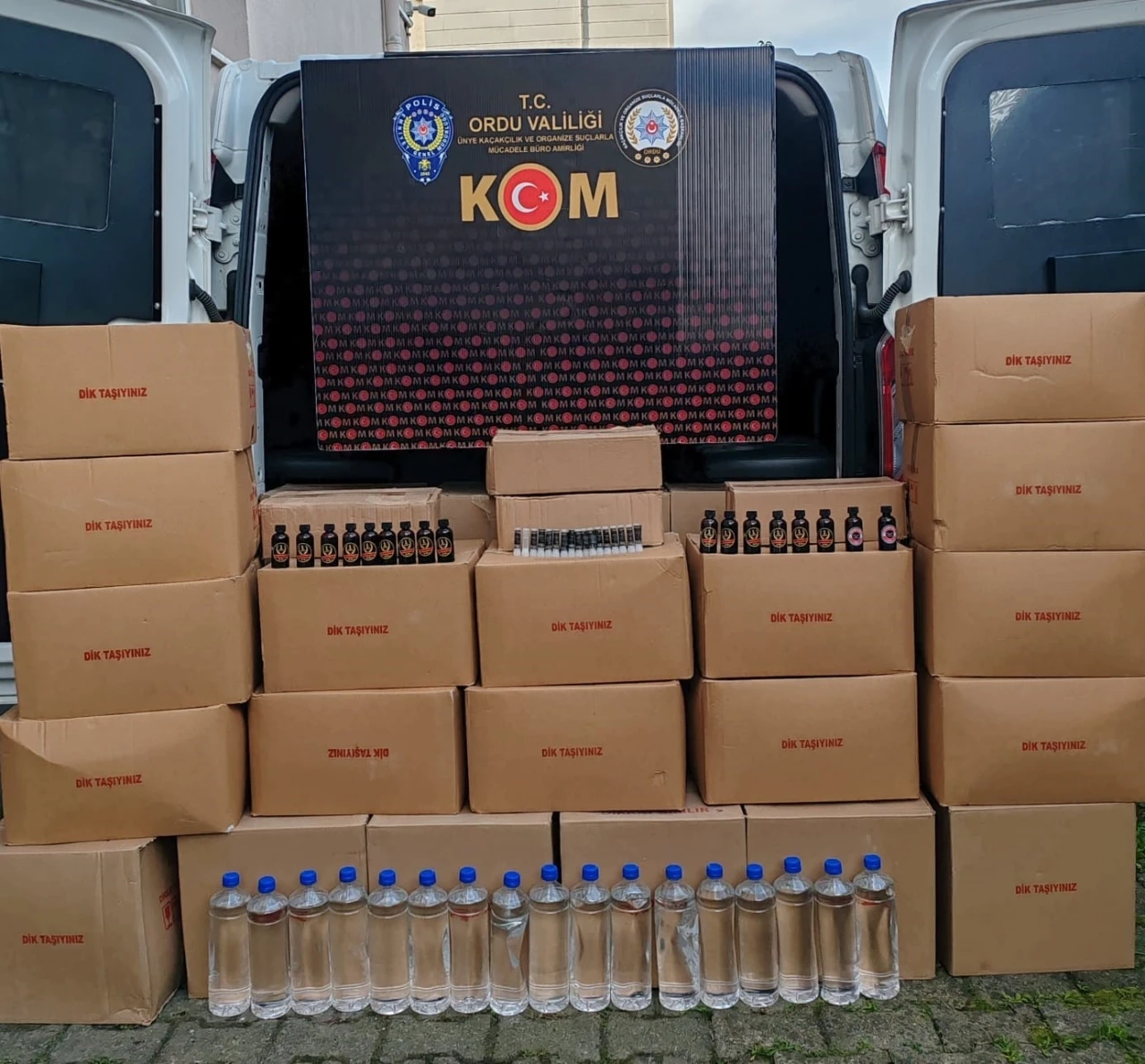 İl Emniyet Müdürlüğü Kaçakçılık ve Organize Suçlarla Mücadele Şube Müdürlüğü (KOM) ekipleri, sahte alkollü içkiye yönelik, Ünye ilçesinde 4, Fatsa ilçesinde ise 1 adrese yönelik operasyon düzenlendi. Operasyon kapsamında yapılan aramalarda, 400 litre alkol, 468 adet alkol yapımında kullanılan aroma verici, 440 adet şişe kapağı, 32 şişe (32 litre) sahte alkol, 6 bin adet makaron, 2 adet kurusıkı tabanca ele geçirildi. Operasyon kapsamında gözaltına alınan B.T. (52) sevk edildiği adli mercilerce tutuklanırken, 4 şüpheli ise ifadelerinin ardından serbest bırakıldı.
