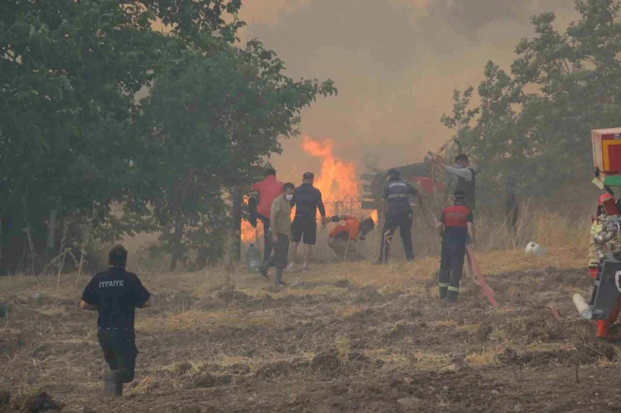 Ekipler ile vatandaşlar yangının evlere sıçramaması için yoğun mücadele veriyor.