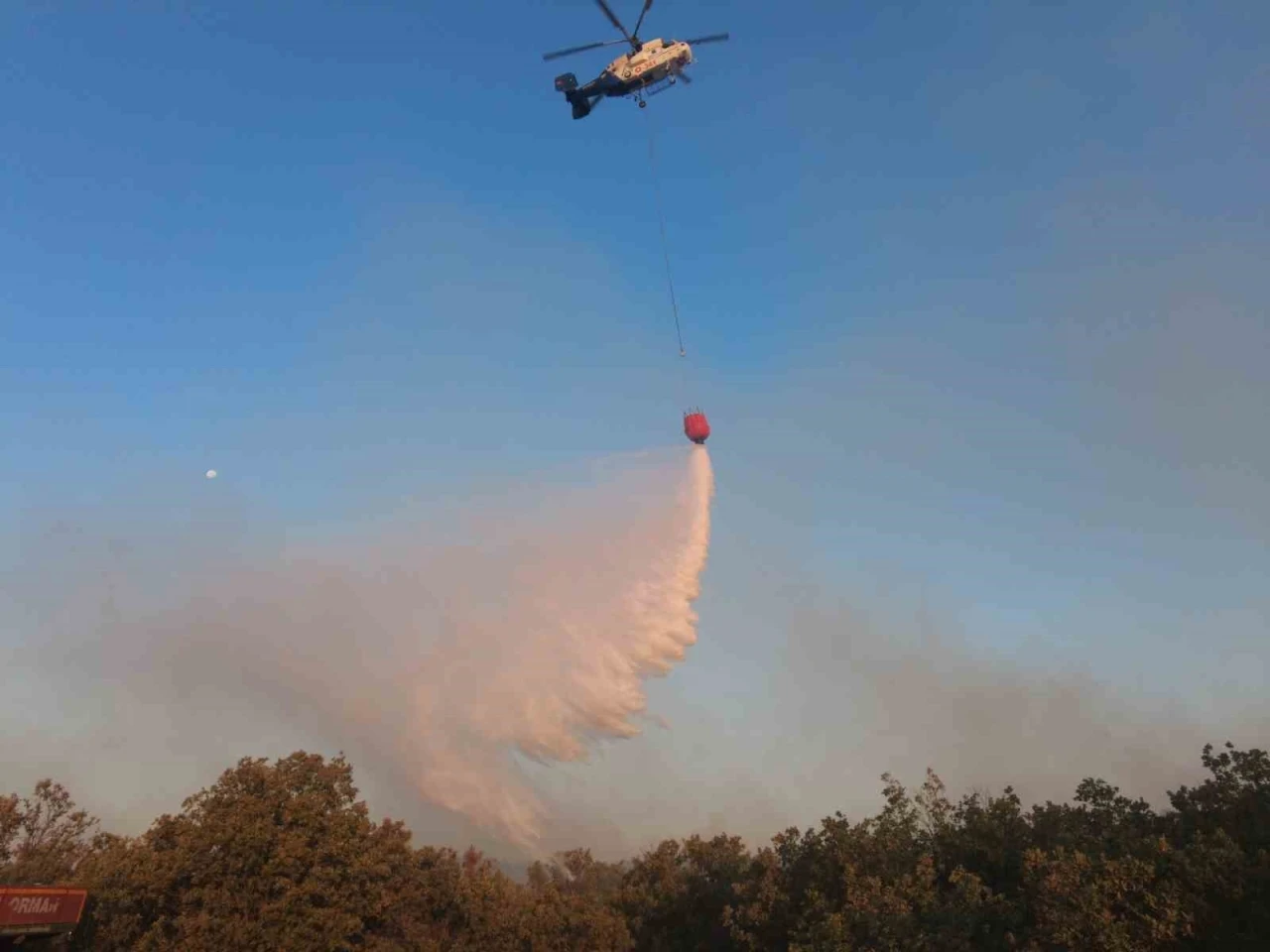 Edirne’de 14 saattir devam eden orman yangınına havadan müdahale başladı.