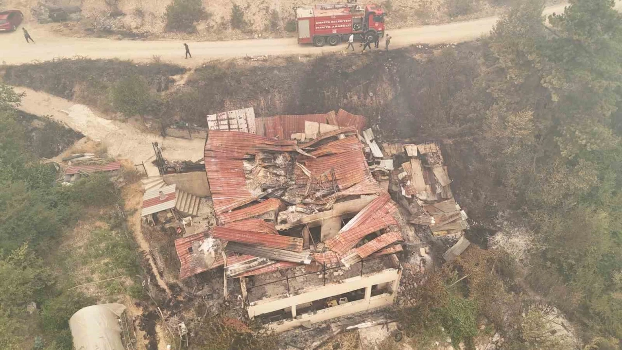 Yangının verdiği tahribat dron ile havadan görüntülendi.