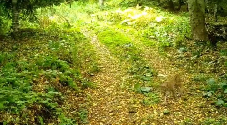 Ormanın hayaleti olarak bilinen vaşak, Düzce’de fotokapana takıldı.