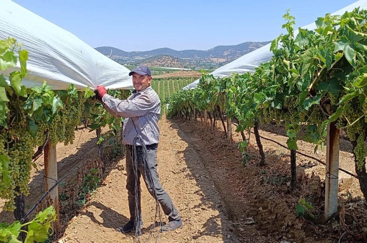 Sarıgöl’de örtü altına alınan üzüm bağları, dolu, aşırı güneş, iri yağmur, çiğ ve kırağı gibi doğa olaylarına karşı koruma altına alınmış oluyor.