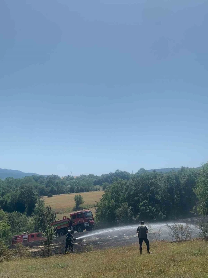 Bolu’da ot biçme makinesinden çıkan kıvılcım nedeniyle tarlada yangın çıktı. Yangın ağaçlık alana sıçramadan söndürüldü.