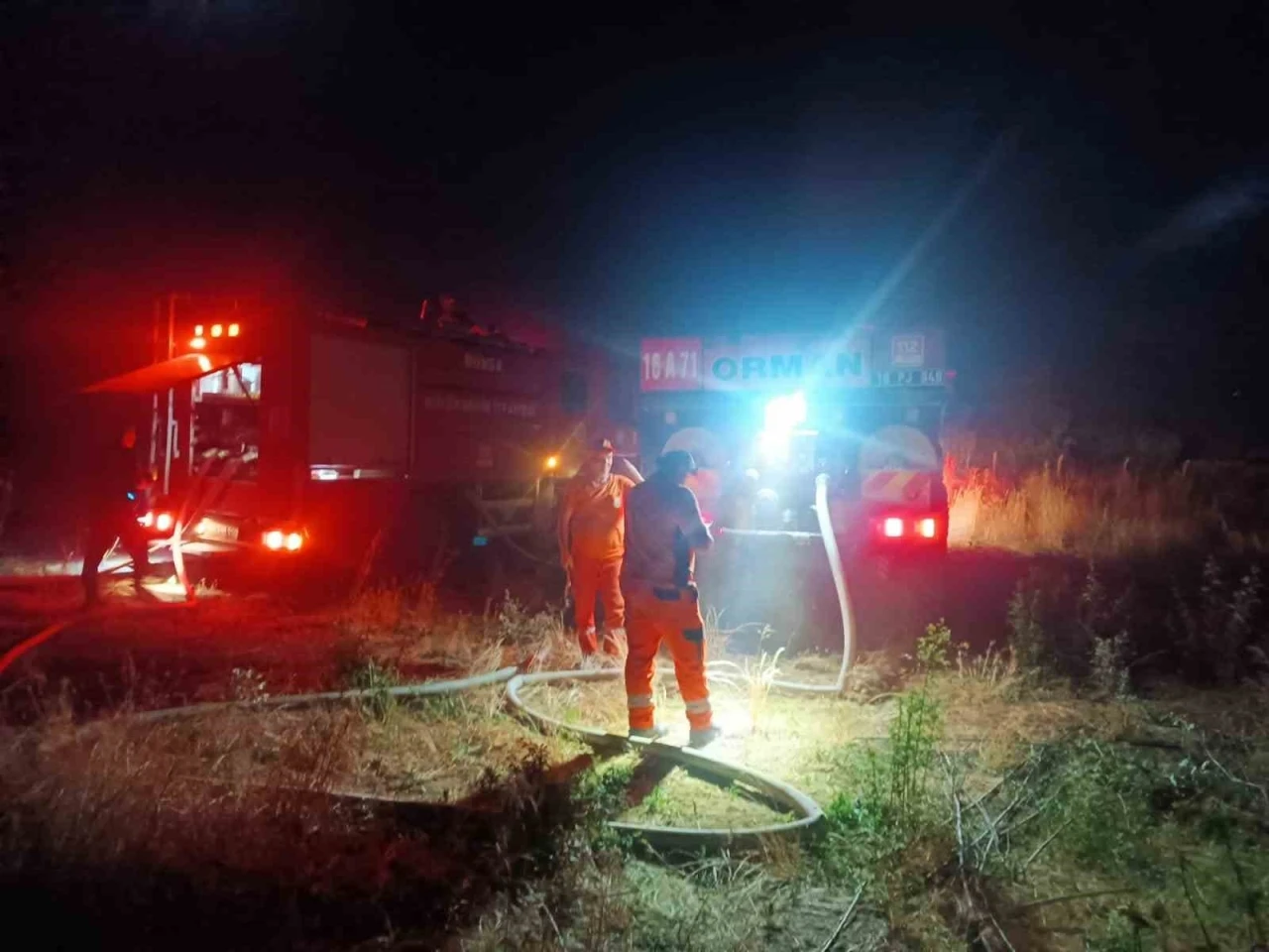 Bursa’nın İnegöl ilçesinde otluk alanda çıkan yangın ağaçlık alana sıçradı. Ceviz bahçesi ve ormanlık alandaki bazı ağaçlar yandı.