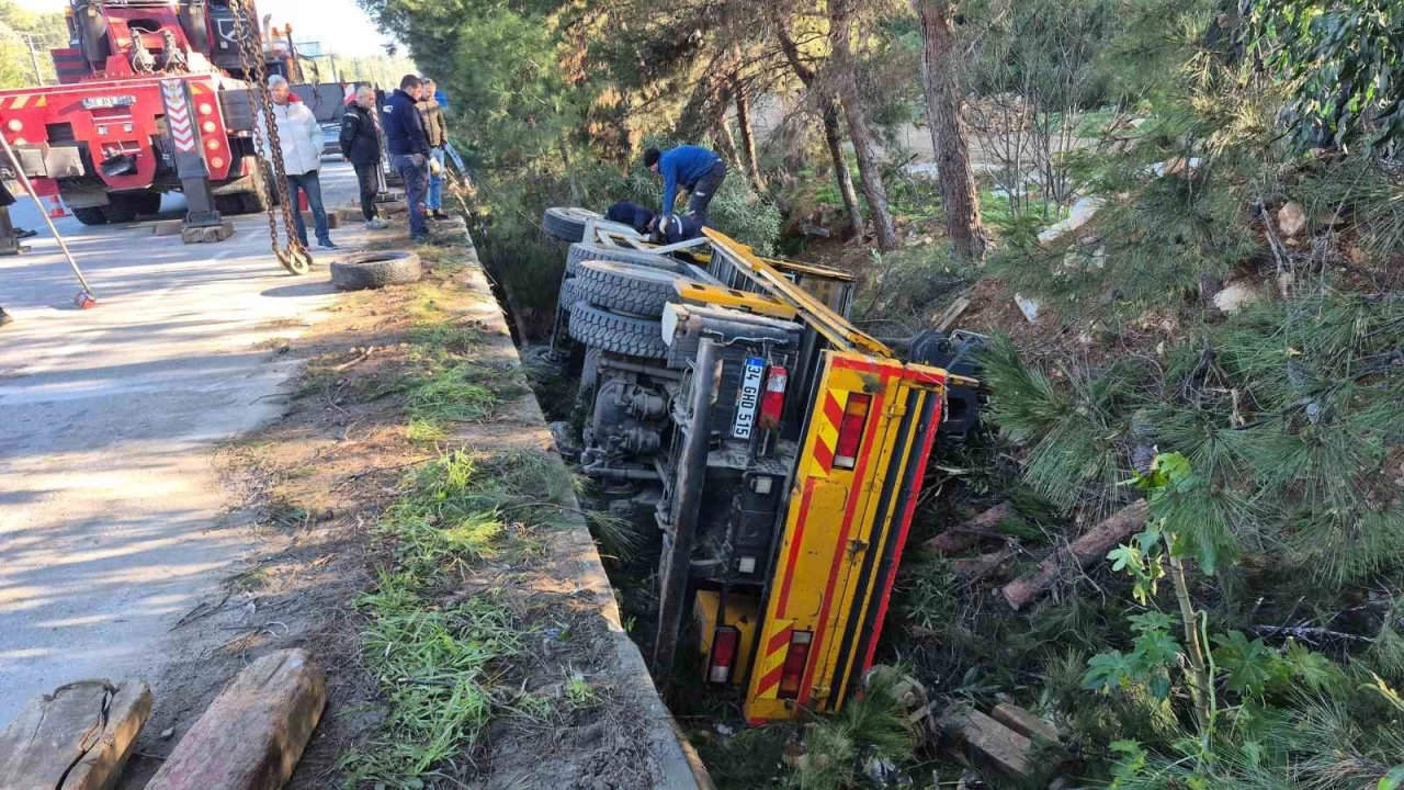 Muğla’nın Bodrum ilçesinde otomobile çarpıp şarampole devrilen vincin sürücü yaralandı. Edinilen bilgiye göre, sabah saatlerinde Bodrum - Milas Karayolu’nda seyreden vincin sürücüsü, Torba Kavşağı’ndan karayoluna giren otomobile çarpmamak için sola manevra yaptı. Vincin sürücüsü o esnada sol şeritte seyreden araca çarpmamak için sağ şeride geçti.