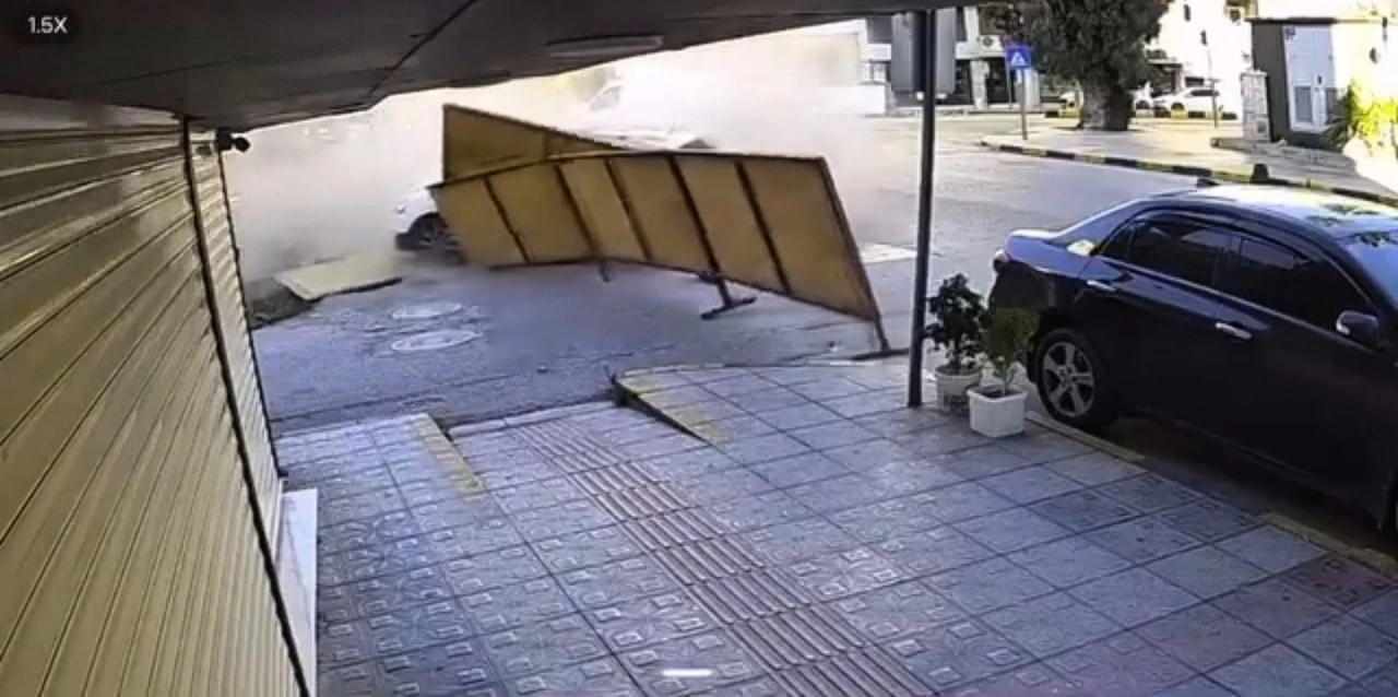Hatay’ın İskenderun ilçesinde otomobille çarpışan cipin inşaatı çevreleyen bariyerleri yıktığı anlar güvenlik kamerasına yansıdı.