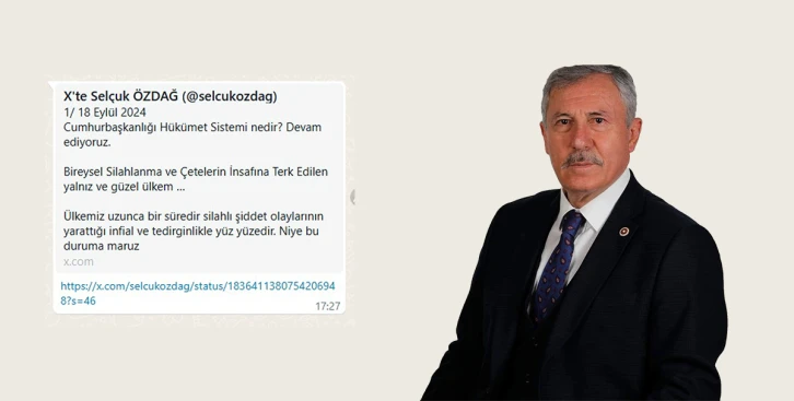 Türkiye’deki silahlı şiddet ve güvenlik sorunlarının derinleştiğine dikkat çeken Gelecek Partisi Muğla Milletvekili Selçuk Özdağ, bu durumun toplumsal huzursuzluğu artırdığını ve bireylerin güvende hissetmemesine neden olduğunu belirterek, “Bireysel silahlanma ve çetelerin insafına terk edilen yalnız ve güzel ülkem” dedi.