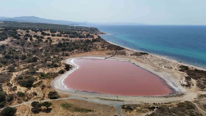 Çanakkale’nin Ezine ilçesine bağlı Dalyan köyündeki Alexandria Troas Antik Kenti’nin 2 bin yıllık iç limanı, zamanla denizle bağlantısı kesilince, doğa şartlarına bağlı olarak kalp şeklini aldı. İçerisindeki tuzlu su da yılın belli dönemlerinde pembe renge dönüşünce ortaya kalpli pembe göl çıktı. Bugünlerde yeniden pembeleşmeye başlayan kalp şeklindeki göl, ziyaretçilerin ilgisini çekiyor. Pembeye bürünen ve kalp şekli ile dikkati çeken ’Kalpli Göl’, drone ile havadan görüntülendi. Kalpli göl doğal dokusu bozulmaması ve zarar görmemesi için araç trafiğine kapatıldı. Ziyaretçiler yaya olarak gölün olduğu alanı gezebilecek. Alexandria Troas Antik Kenti’nin ticaret merkezi olarak uzun süre hizmet eden 2 bin yıllık iç limanı, günümüzde ise kalpli pembe göl olarak turizme katkı sağlıyor. Dış liman ile bağlantısı zamanla ortadan kalkan antik kentin iç limanı bir göle dönüştü. Sıcaklık ve tuzluluğun artmasından dolayı ’dunaliella salina’ adlı mikroskobik bitkisel canlının fazla üremesinden kaynaklı yaşanan pembe ve kırmızıya yakın tonlar, göle farklı bir görünüm kazandırıyor. Zamanla da doğa şartlarına bağlı olarak suyun çekilmesi ile kalp şeklini aldı. İçerisindeki tuzlu suyun yılın belli dönemlerinde pembe renge bürünmesiyle 2 bin yıllık antik liman, dünya üzerinde bilinen ve pembe renge sahip 8 gölden birisi haline geldi. Ziyaretçilerin çekip, sosyal medyada paylaştığı fotoğraflarla popülerliği artan kalp şeklindeki gölün suyu, bugünlerde yine pembeye çalmaya başladı. Pembeye bürünen ve kalp şekli ile dikkati çeken ’Kalpli Göl’, drone ile havadan görüntülendi. Kalpli göl doğal dokusu bozulmaması ve zarar görmemesi için araç trafiğine kapatıldı. Ziyaretçiler yaya olarak gölün olduğu alanı gezebilecek. Ankara Üniversitesi Arkeoloji Bölümü Öğretim Üyesi Kazı Başkanı Prof. Dr. Erhan Öztepe, “Son belki beş yıldır Alexandria Troas Antik kentinin iç liman bölgesi olarak aslında teknik olarak karşılığı bu içinde hapsolmuş suyun nedeniyle kalpli göl yada pembe göl olarak toplum tarafından tanınan bölge ısı değişimleri ve burada hapsolmuş suyun içerisinde yaklaşık bin yılı aşkın süredir oluşan mikro klima, mikro iklim ve mikroorganizmalar nedeniyle renk değiştiriyor. Bu ısıya bağlı olarak mevsimsel değişimler olabiliyor. Genelde de işte Ağustos ayının ikinci yarısından Eylül ayının ortasına kadar olan dönemde bu tam yazdan sonbahara döndüğümüz dönemde bu ısı değişimleri çok net bir biçimde renk değişim olarak karşımıza çıkıyor. Bir de kıştan ilkbahara dönerken, renk değişimi tabii kalpli pembe göl bir şeker pembesi değil genelde buraya gelen ziyaretçilerimiz böyle gerçekten o şeker pembesi renginde tonunda bir renk bekliyorlar. Öyle bir renk değişimi değil bu daha kiremit kırmızısı rengi olarak adlandırabileceğimiz bir renk. Bu değişimi sağlayan hem bu suyun içerisinde oluşan bu mikroorganizmaların da oluşturduğu bir değişim ki, bu mikroorganizmalarla ilgili geçtiğimiz yıllarda Çanakkale Onsekiz Mart Üniversitesi Biyoloji bölümünden mikrobiyoloji üzerine çalışan uzmanların çalışmaları oldu. Burada daha önce tespit edilmemiş olan mikroorganizma boyutunda türlerin olabileceği ve bunların da belki çeşitli bilimsel çalışmalar neticesinde bir ihtimal bir yeni antibiyotik için kullanabileceğine dair veriler ortaya koyduğu meslektaşlar. Burayla ilgili bir düzenleme yapılması tabii ki bizim gündemimizde” dedi. Son yıllarda bu alanın popülaritesinin artmasıyla birlikte ziyaretçi sayısının fazlalaştığını da belirten Kazı Başkanı Prof. Dr. Erhan Öztepe, “Bunun kontrol edilebilir düzeyde olması çok önemli, çünkü bu özel bir alan. Şöyle söyleyeyim, yani mikrobiyologlarla yaptığımız değerlendirmelerde biyoloji bilimi açısından çevresiyle birlikte arkeolojik olarak kuşkusuz bir iç liman bölgesi olması anlamında değeri var ama biyoloji bilimi açısından da değeri var. Hatta böyle bir örnekleme ile bulun diğerinin bana anlattığı meslektaşlar dediler ki Salda Gölü ne kadar kendi has özel bir alansa buradaki bu renk değişimini sağlayan iç liman bölgesi ya da halkın tanıdığı ismiyle kalpli göl bölgesi o kadar değerli. Dolayısıyla buradaki turist sirkülasyonu düzenlemek gerekliliği ortaya çıktı. Biz şimdi bununla ilgili bir çalışma yapıyoruz. Bu yıl tabii çevremizde maalesef yaz başından beri yaşanan yangınlar sebebiyle bu alana trafik girişini kestik. Sadece yaya trafiği söz konusu, insanlar yaya olarak bu gölü gelip gezebilirler. Burası özel bir alan, bu alanı korumak hepimizin görevi. Lütfen ziyaretçilerimizden şunu rica ediyoruz, her zaman gelip gezebilirler bu alanı, alanın etrafında dolaşabilirler. Bu alanla ilgili bilgilendirme panoları hazırlanıyor. Onları da alana dikeceğiz. Bir düzenleme yapacağız. Ama sanıyorum bu tarihten sonra alan artık araç trafiğine açık olmayacak. Bu korumayı yapmak zorundayız. Araçlarıyla bir yere kadar gelip, yürüyerek alanı gezebilir. Ama gezdikleri süre boyunca alanı temiz tutulması, koruması bizim olduğumuz kadar ziyaretçilerin de sorumluluğunda, bu konuda onların desteğini bekliyoruz, her zaman bekliyoruz gelebilirler. Alanla ilgili olarak tabii entegre bir takım projelerimiz var. Alanı yukardan gören antik kentin Geç Akropoli diyebileceğimiz bölgede yer alan bir eski okul binası ve okul binasının merkezinde yer aldığı 2,5 dönüm bir arazide biz bir ziyaretçi bilgilendirme merkezi projesi hazırladık. Bu projesi proje onaylama aşamasında, bunu hayata geçirdiğimizde burası çok daha cazip bir noktaya gelecek ve entegre edeceğiz bunu iç liman, dış liman bölgesiyle, ziyaretçilerimizi bekliyoruz. 