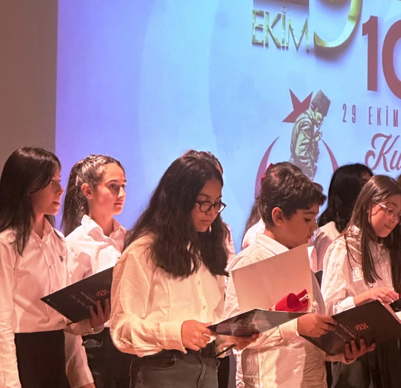 Etkinlik, öğrencilerin ellerinde Türk bayraklarıyla söylediği "Onuncu Yıl Marşı" eşliğinde sona erdi.