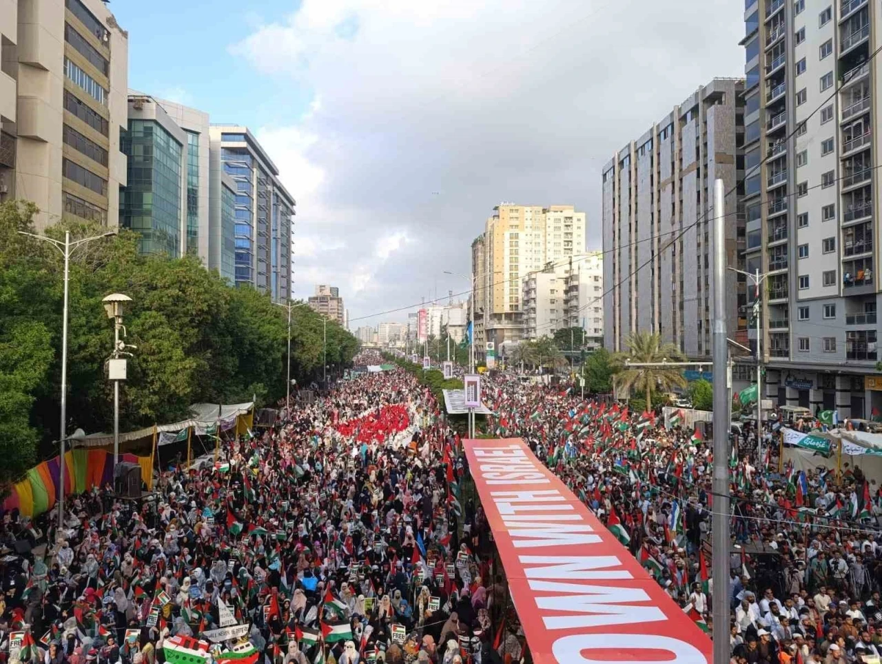 Pakistan’ın Karaçi kentinde binlerce kişi Gazze Şeridi için sokağa indi. Cemaat-i İslami Partisi liderliğinde düzenlenen gösteride, ellerinde Filistin bayrakları taşıyan protestocular, Gazze Şeridi ile dayanışma içinde olduklarını ifade etti.