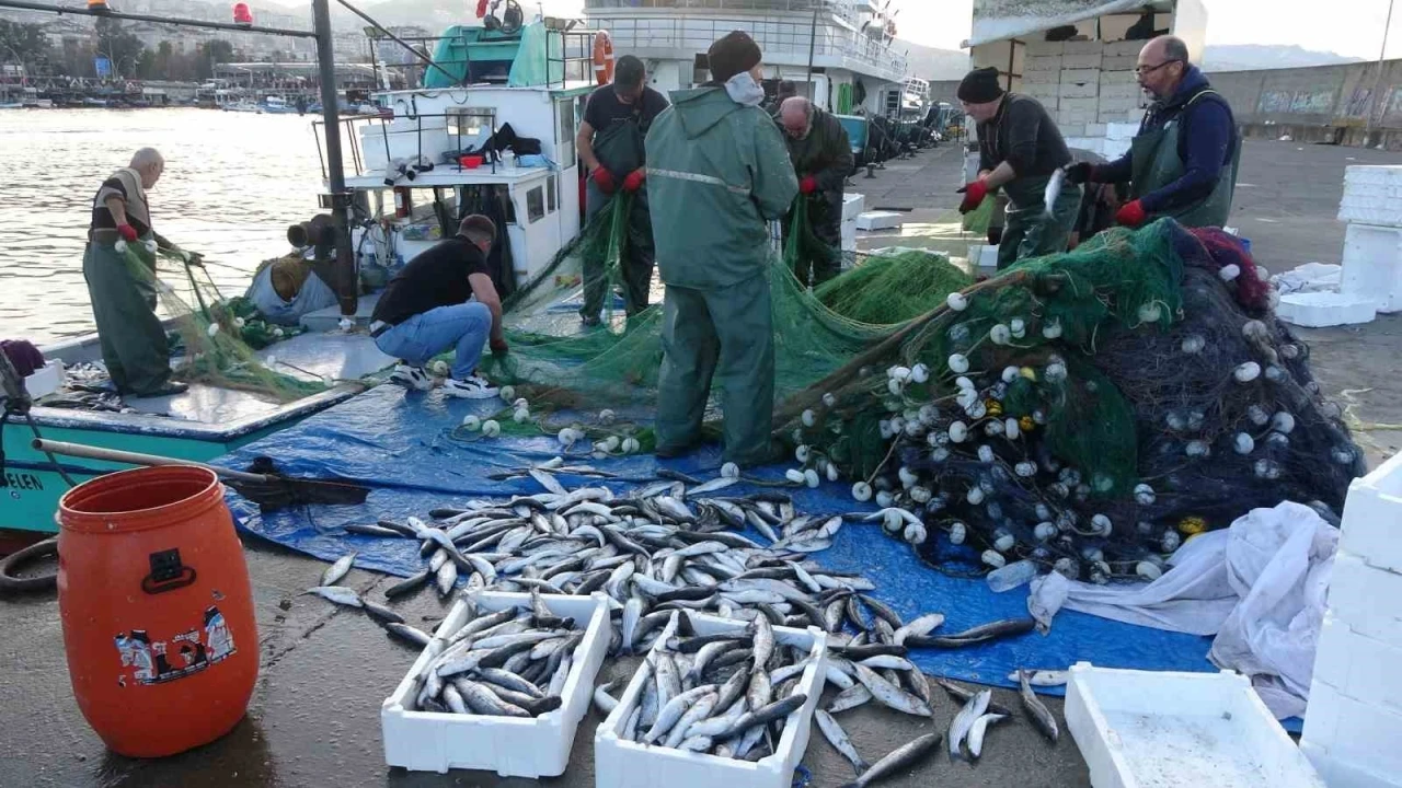 Faroz Limanına demirleyen teknede ağları kefalle dolu dönen balıkçılar, kefali ağlardan temizlemeye çalışırken, son yılların en bereketli sezonunu yaşadıklarını söylediler.