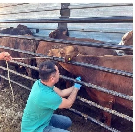 İlçe Tarım ve Orman Müdürlüğü veteriner hekimleri tarafından, besicilik amacıyla yurt dışından ithal edilen hayvanların işletmelerdeki kontrolleri yapılarak aşılama ve analiz için kan numunesi alımı işlemleri gerçekleştirildi.
